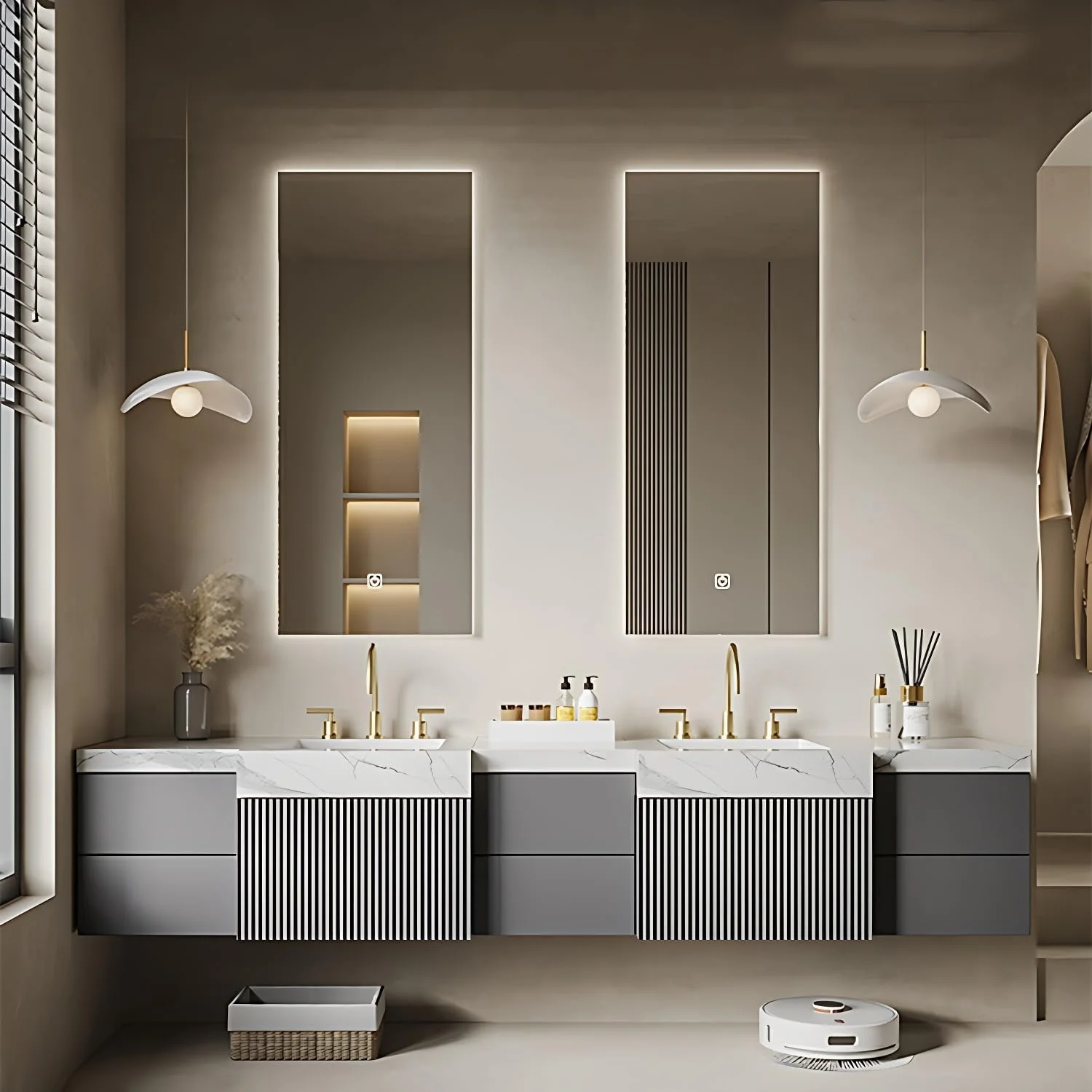 Luxury bathroom vanity with floating design and high-end finishes